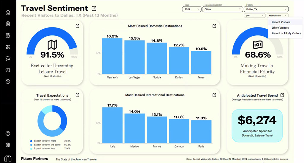 - Customizable Filters — Drill down by demographics, trip purpose, traveler type, and more—so you get the answers that matter to you.